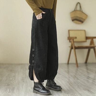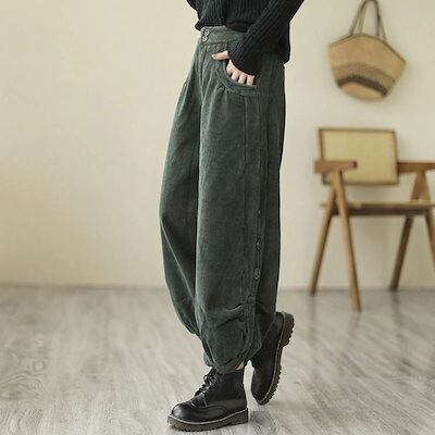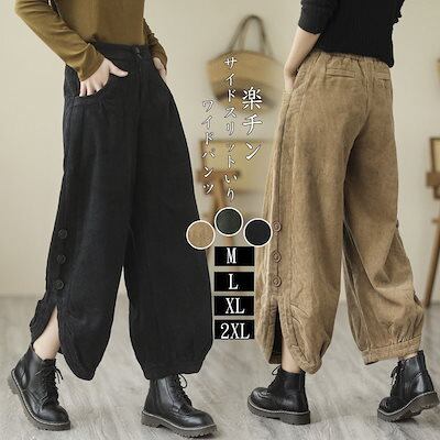ワイドパンツ 秋冬 レディース パンツ コーデュロイ ワイド ボトムス 冬 ロングパンツ パンツ スリット ガウチョパンツ ロング 防寒パンツ 冬パンツ 大きいサイズ ガウチョ 体型カバー 着痩せ 美