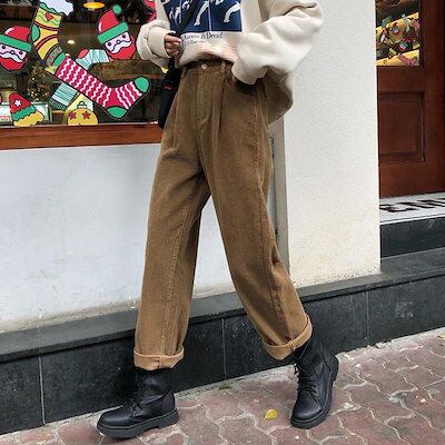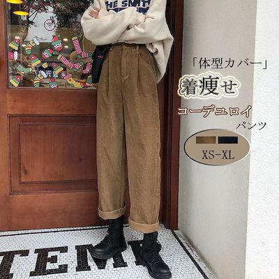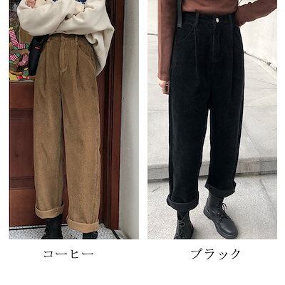 ストレートパンツ レディース 秋冬 コーデユロイ パンツ 冬 ポケット付き ボトムス パンツ ハイウエスト ワイド ロングパンツ マキシ丈 ウエストゴム 秋 無地 パンツ ロング ガウチョ 低身長 ウ