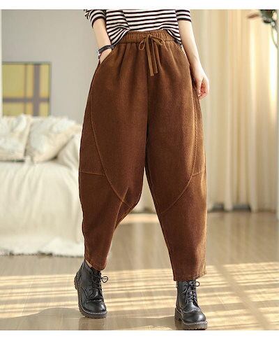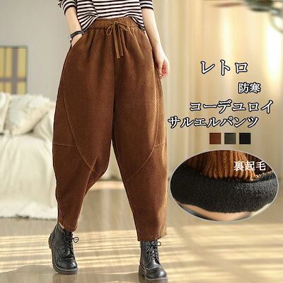 パンツ 裏起毛 レディース 秋冬 ワイドパンツ ボトムス 無地 ボア ロング テーパード テーパードパンツ ハロンパンツ 秋 冬 ゆったり 大きいサイズ コーデユロイ バルーンパンツ サーカスパンツ