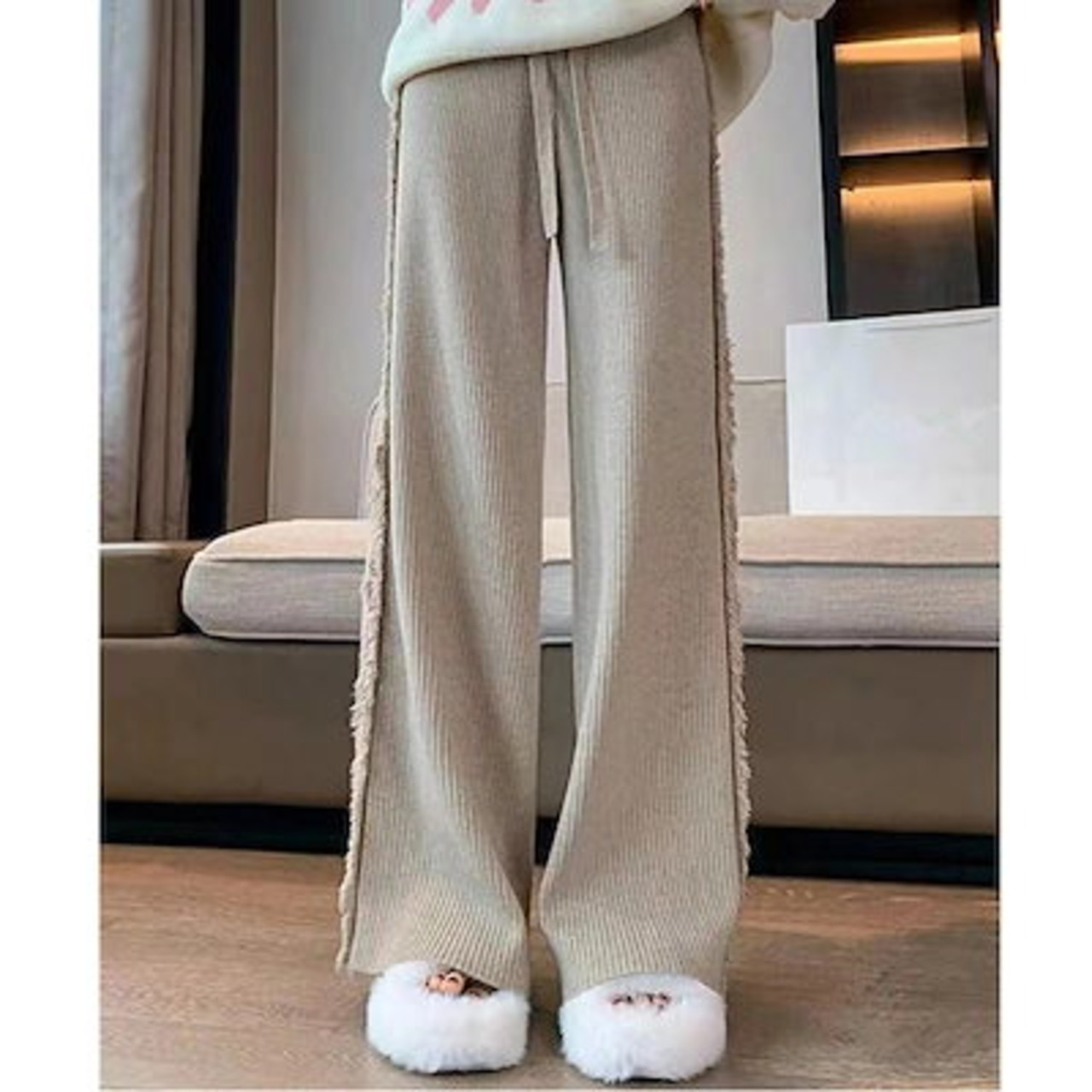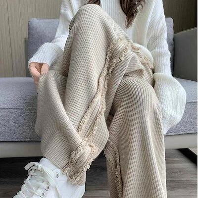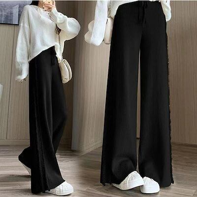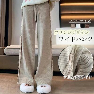ワイドパンツ コーデュロイ 冬 フリンジ パンツ コーデユロイ レディース ストレート ロングパンツ ガウチョパンツ 秋冬 パンツ ワイド ストレートパンツ ハイウエスト カジュアル 無地 あったか