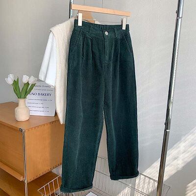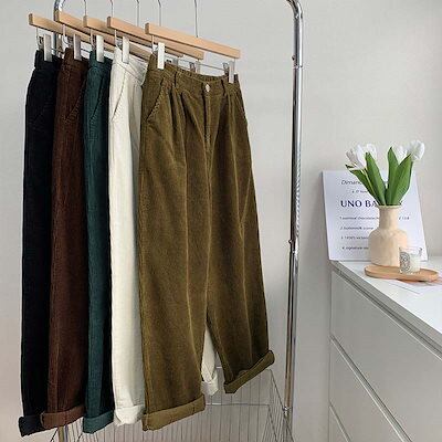 ストレートパンツ レディース ワイド 秋冬 コーデユロイ パンツ 冬 ワイドパンツ ボトムス パンツ ハイウエスト ワイド ロングパンツ マキシ丈 ウエストゴム 秋 無地 パンツ ロング ガウチョ 防