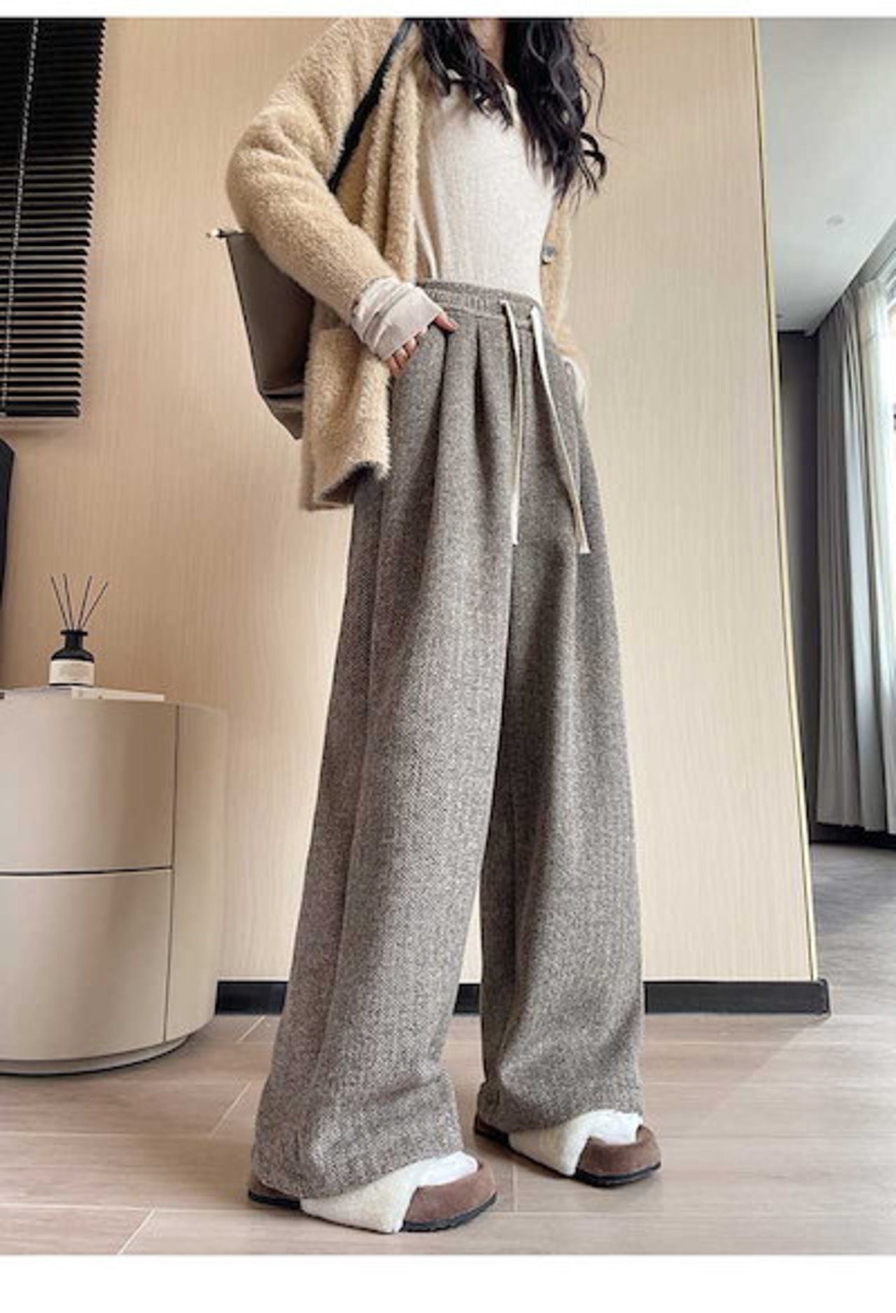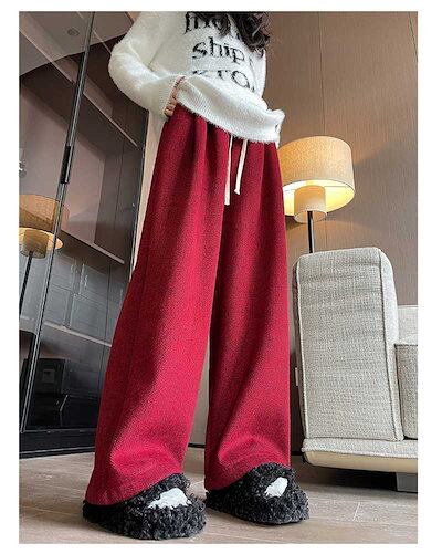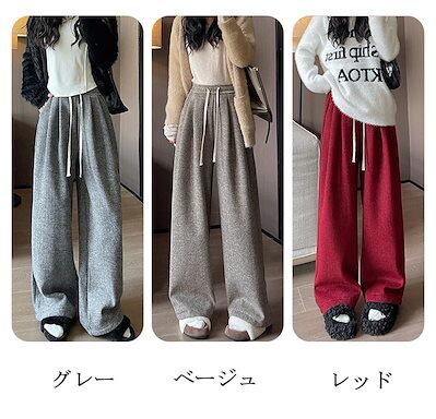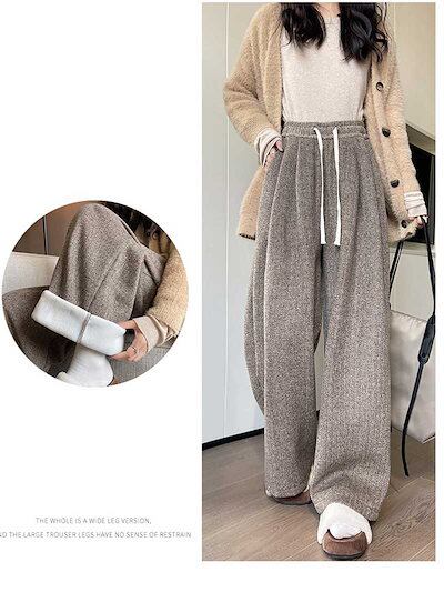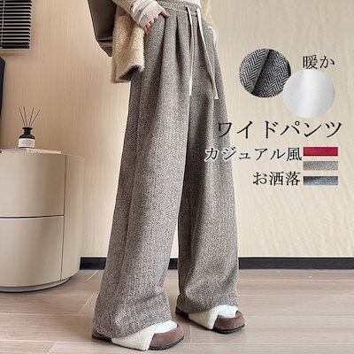 ワイドパンツ 冬 裏起毛 パンツ レディース 秋冬 ガウチョパンツ ワイド ストレートパンツ ポケット付き ハイウエスト カジュアル あったか ガウチョ ボトムス ウエストゴム 大きいサイズ ロングパ