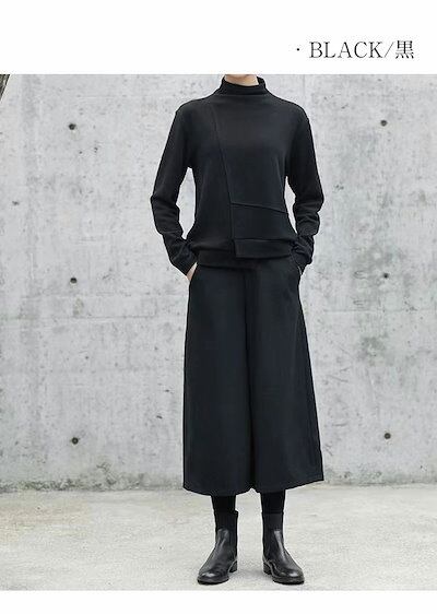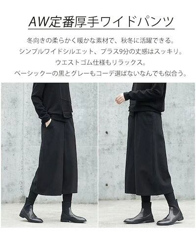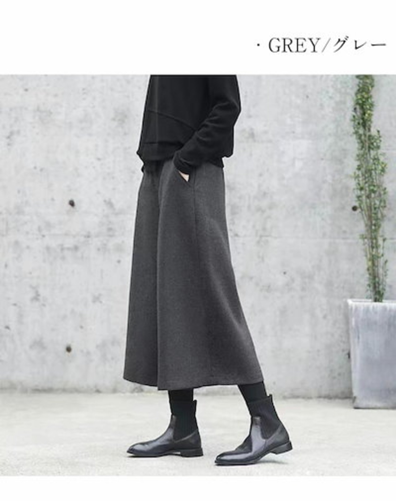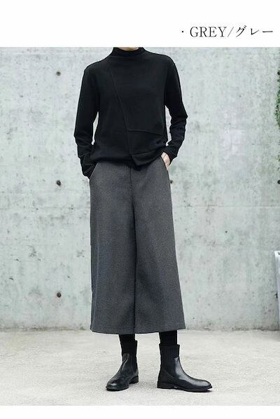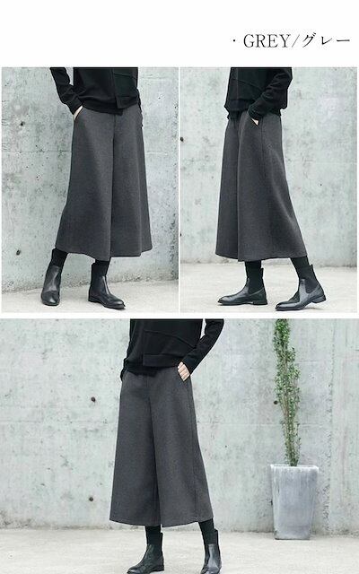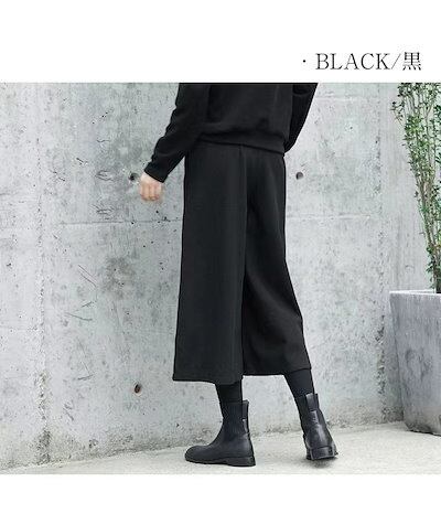 パンツ キュロット ボリューム ゆったり 黒 暖かい 大きいサイズ ワイドパンツ ゴム スカンツ 九分丈 冬 アンクルパンツ ウール調 レディース きれいめ 体型カバー 厚手 美脚 秋冬 ガウチョパン