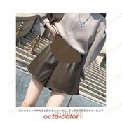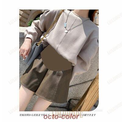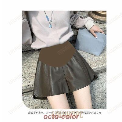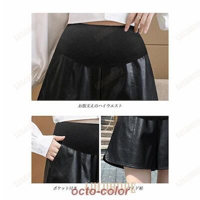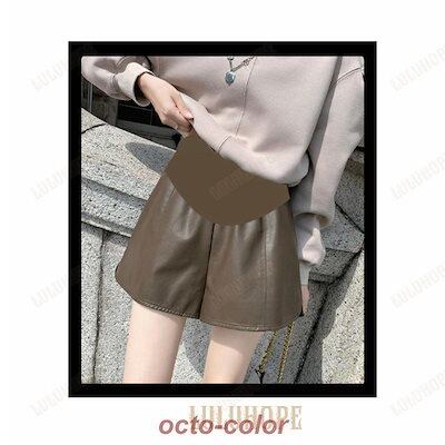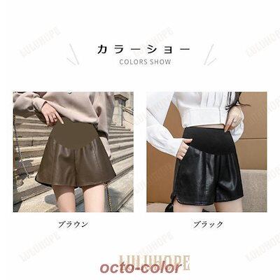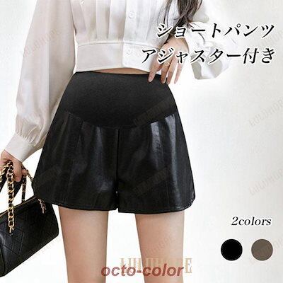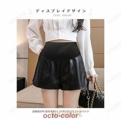 (D0 NG Collection)新品-お得マタニティ ショートパンツ PUレザー 妊婦 PUパンツ ショート丈 ワイドパンツ レディース 短パン 春秋 冬 マタニティパンツ アジャスター付き 産後