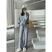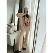 【2枚購入で 2oo円OFF! 】秋冬 新作 おしゃれ 気質 ニット アウター 二点セット レディースセットアップ 上下セット セーター ワイドパンツ セットアップ 通勤 シンプル 福袋