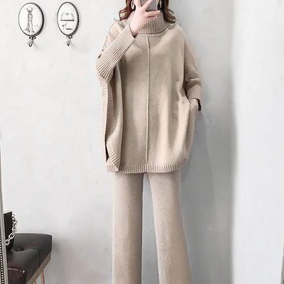 秋 冬 ニット セットアップ アウター 二点セット レディース セットアップ 上下セット セーター ワイドパンツ 通勤 シンプル 福袋