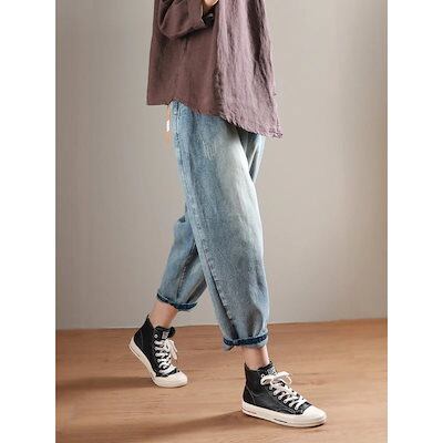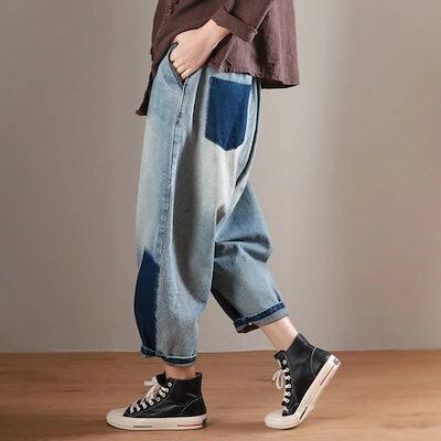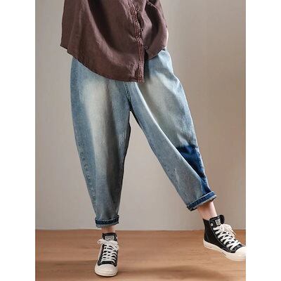 Gパン レディース サルエルパンツ デニムパンツ ワイドパンツ バギーパンツ ウエストゴム ゆったり