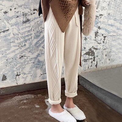 2024 秋 冬 ファッション ニットパンツ 秋 冬 ストレッチ ツイスト ハイウエスト ゆったり ハーレムパンツ レディース防寒 スラックスパンツ おしゃれ ズボン 韓国 大きいサイズ