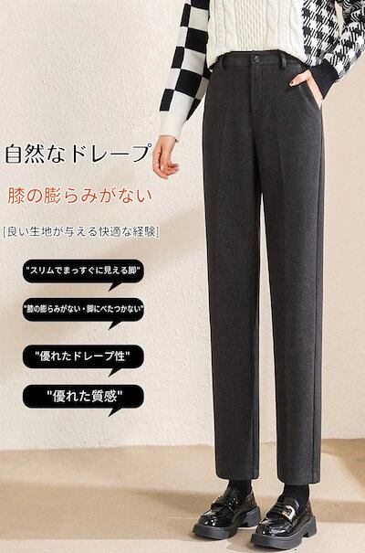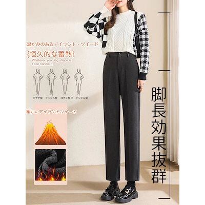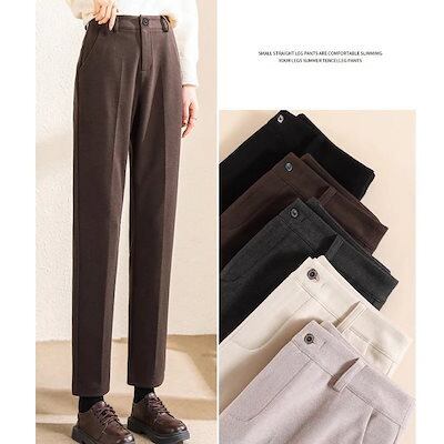 秋冬 人気 スラックスパンツ 保温 パイプズボン ストレートズボン 裏起毛パンツ 日系カジュアルハイウエス ボトムス ン レディースウエストゴムパンツ