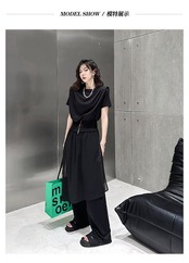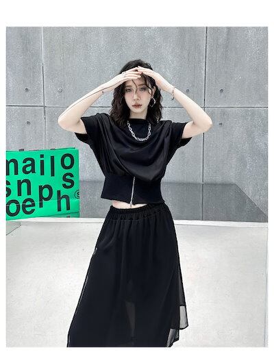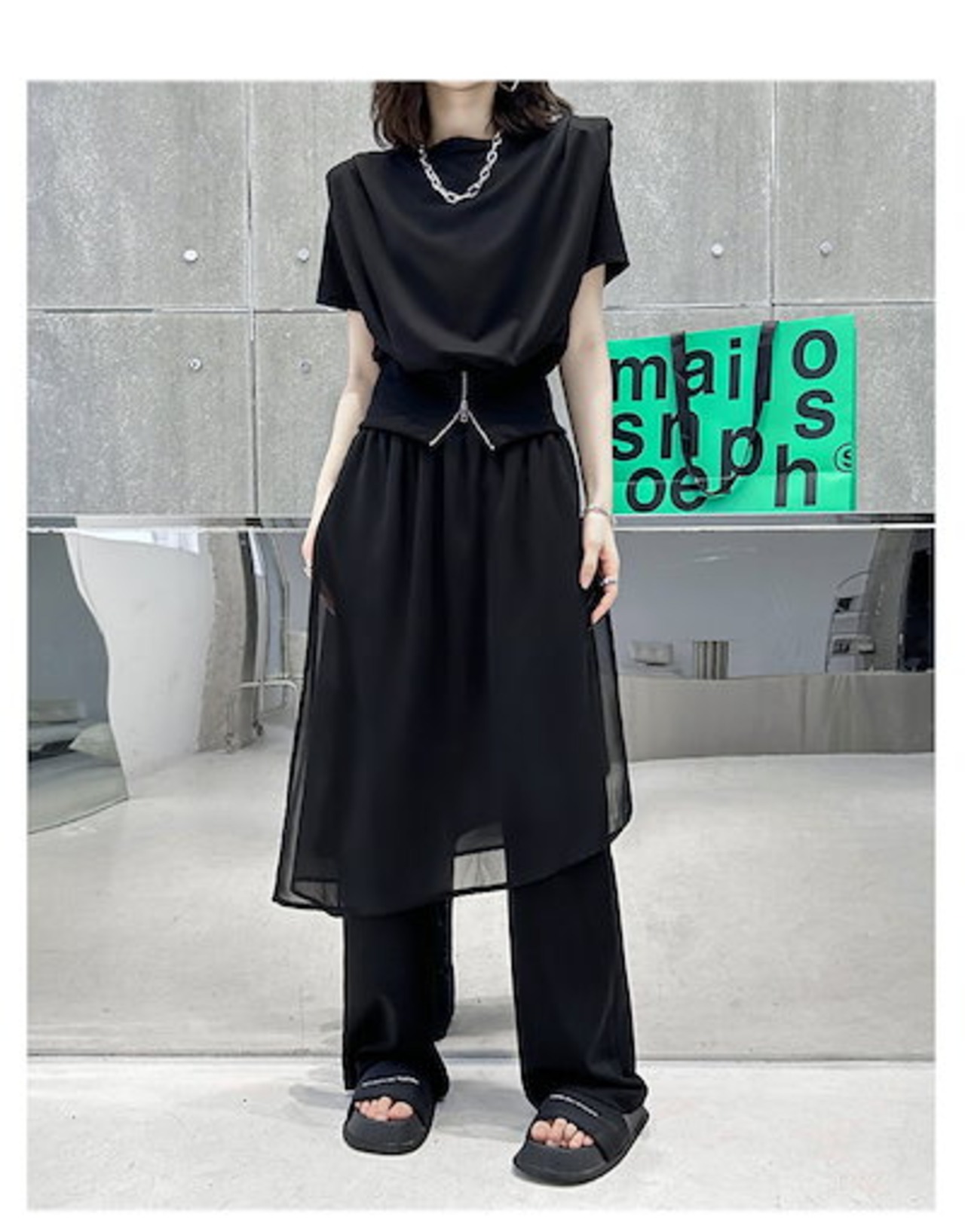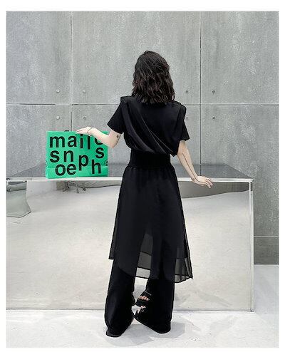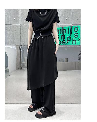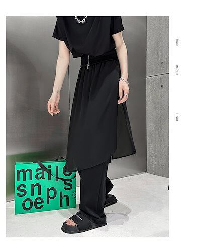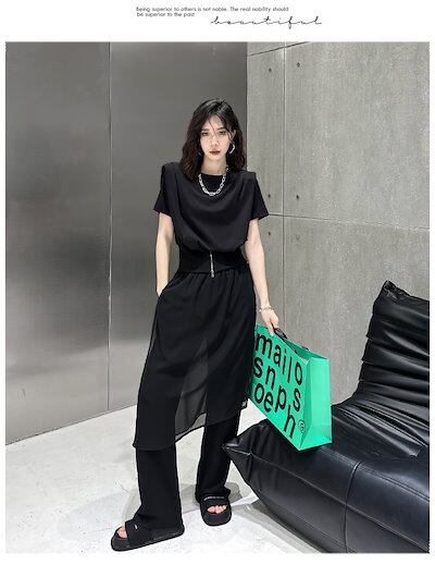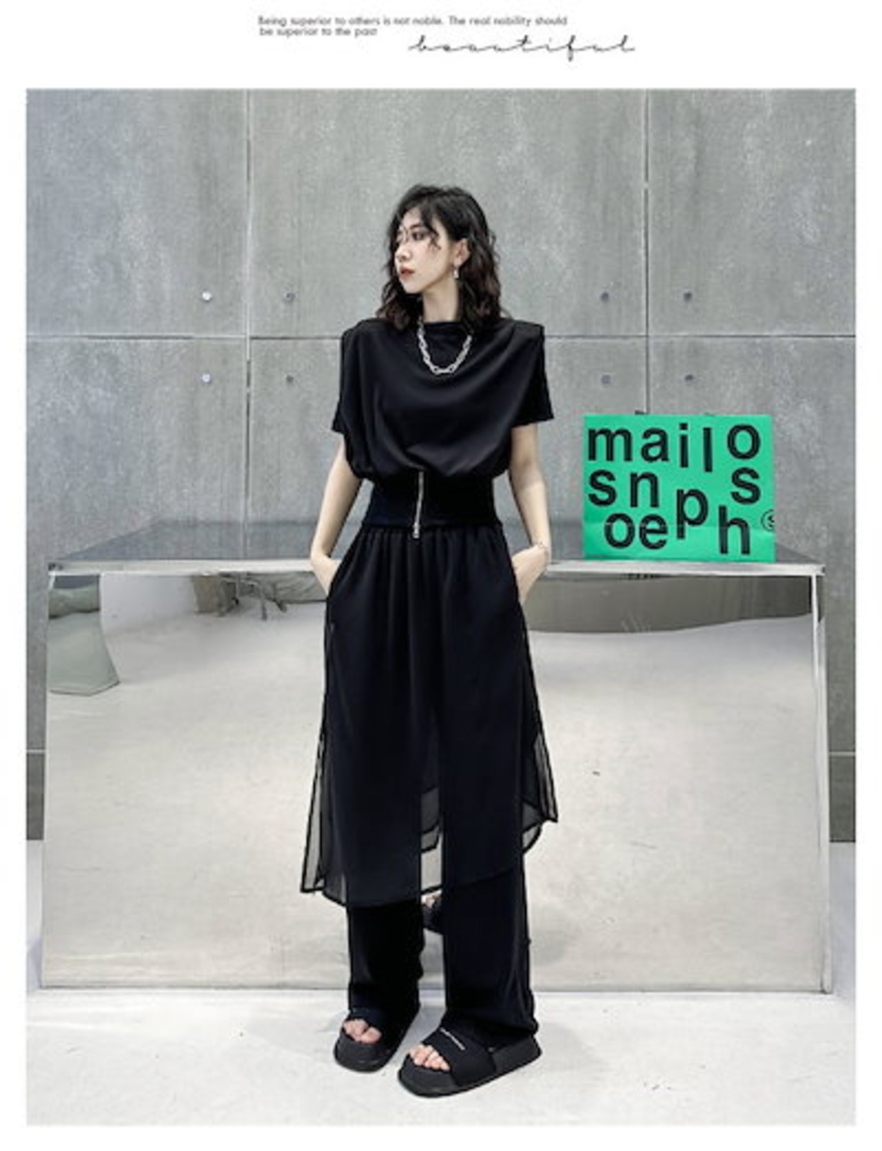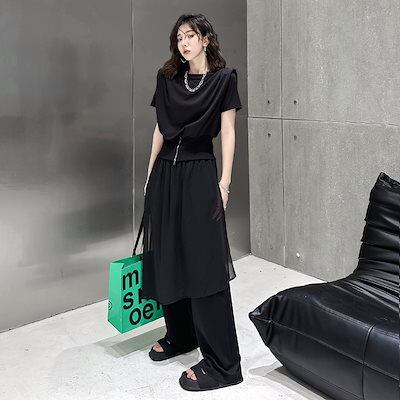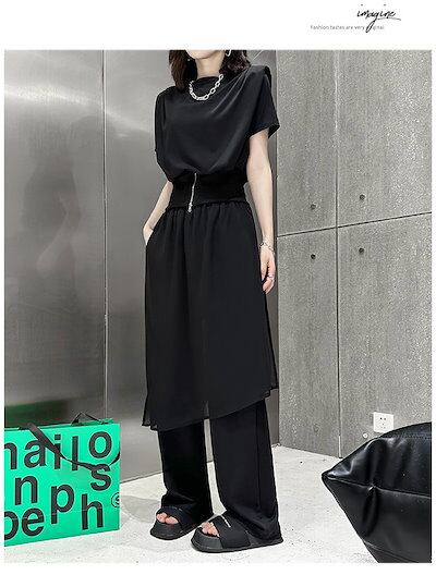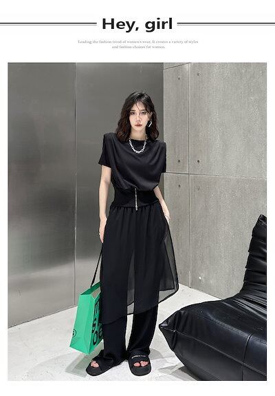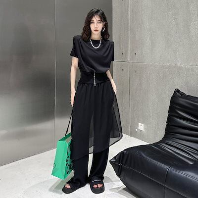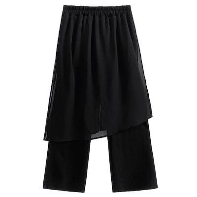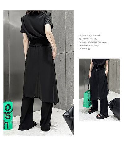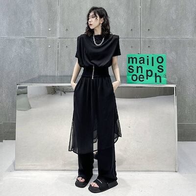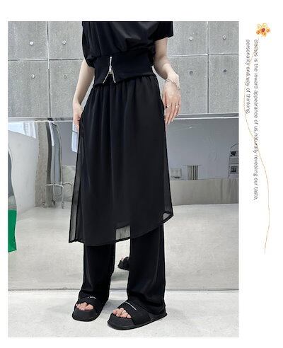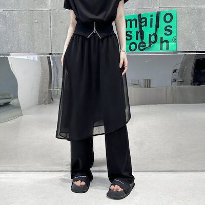 【J.Fashion】 暗黒風 チュールドッキング ロングパンツ 春秋 ハイウエスト レディース スラックス パンツ メガ割