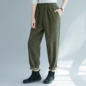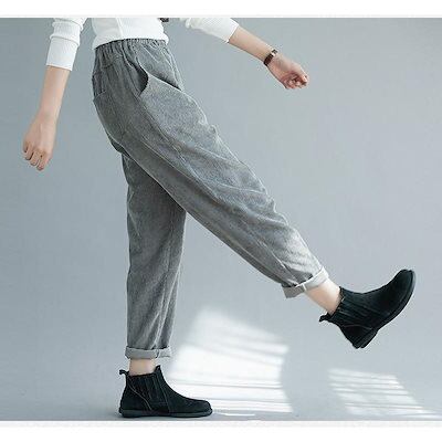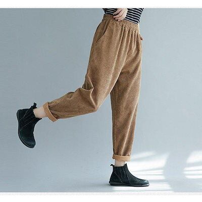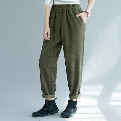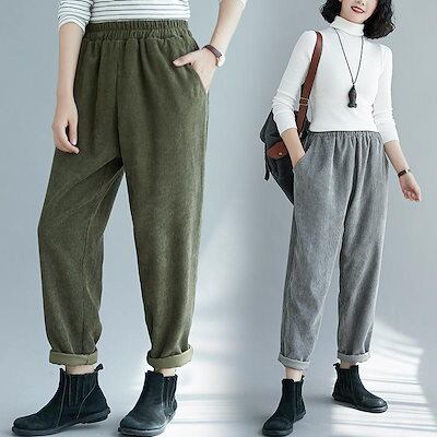新入庫 ボトムス テーパードパンツ ガウチョパンツ レディース 無地 秋冬 レディース ウエストゴム 大きいサイズ 体型カバー コーデュロイ