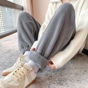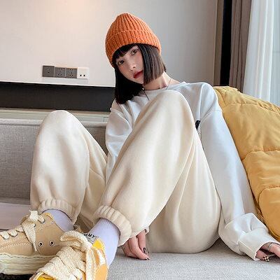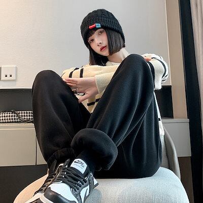 かっこいい!スラックスパンツ500g厚手 裏起毛 運動ズボン レディース ゆったり ドローストリングパンツ 秋 冬 ウォーム 両面ボア フリースコーデュロイズボン
