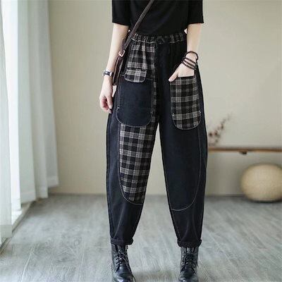 テーパードパンツ 春秋 レディース デニム ウェストゴム パンツ ポケット付き オシャレ ゆったり