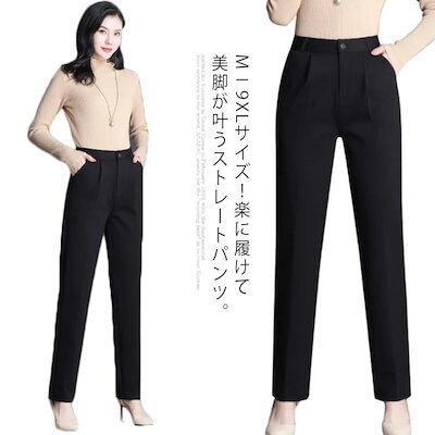 M-9XLサイズ!タック スラックスパンツ レディース スーツパンツ ストレートパンツ ストレッチ 9分丈 パンツ ボトムス ハイウエスト 大きサイズ スラックス 春 秋