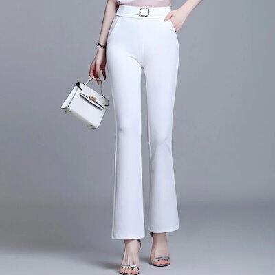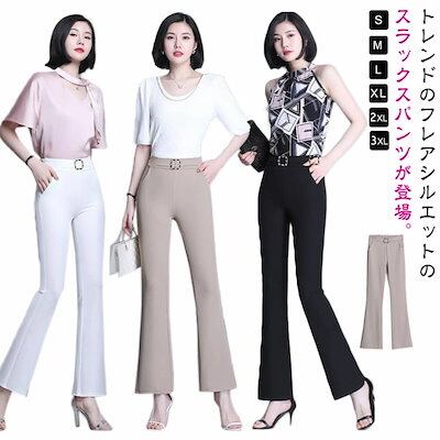 スラックス ズボン パンツ 9分丈 スラックス 美脚 10分丈 レディーズ 秋 脚長効果 ビジネス 通勤 仕事着 ひんやり 冷感 フレアパンツ 薄手 春 夏 大人 黒 ブラック 白 ホワイト 大きサイ