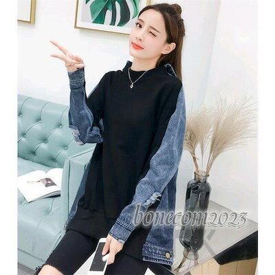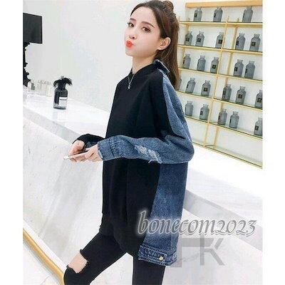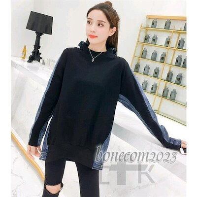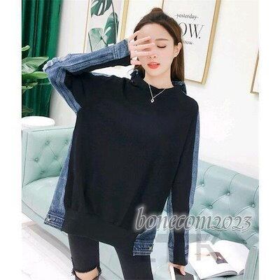 パーカー レディース プルオーバー 切り替え デニム カジュアル 春 トップスマウンテンパーカー