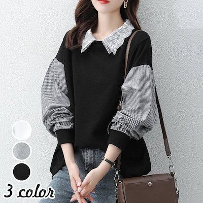 スウェット パーカー レディース 40代 春 長袖 切り替え トップス チェック プルオーバー30%までに制限