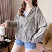 2024 春夏軽アウター レディース 薄手ブルゾン 韓国 ジップパーカー 長袖 サマーカーディガン おしゃれ フード付き ライトブルゾン トップス 透け感 カジュアル パーカー 羽織り シアーカーディ