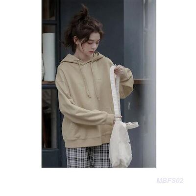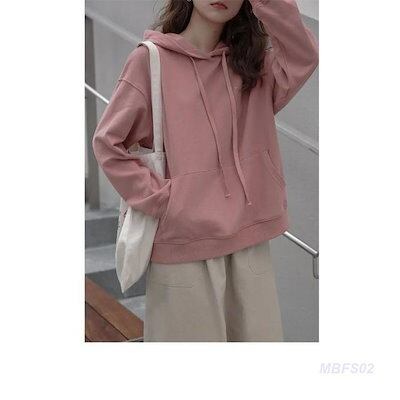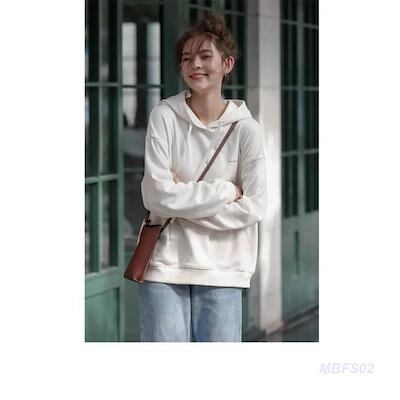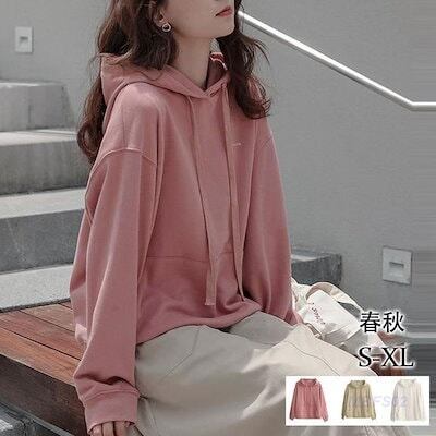 パーカー レディース 長袖パーカー フード付き トップス プルオーバー 薄手 無地 英字 カジュアル シンプル ゆったり おしゃれ 春秋 通学