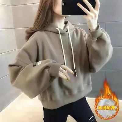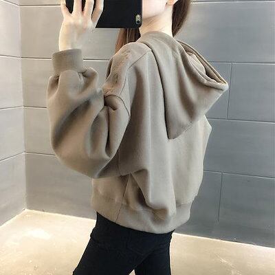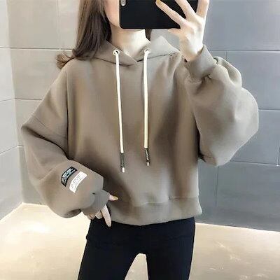 パーカー レディース 大きいサイズ 体型カバー ファッション ショート 裏起毛 スウェット レディース ゆったり フード付きアウター プルオーバー