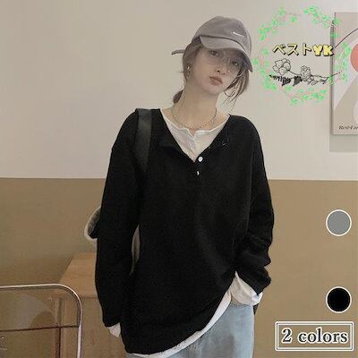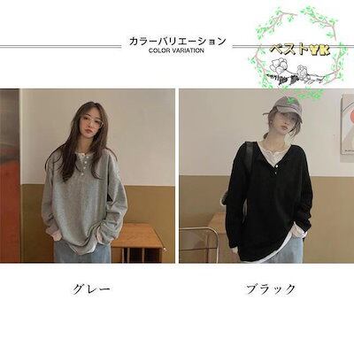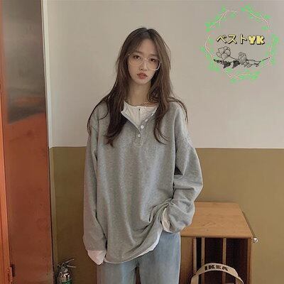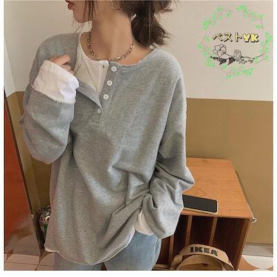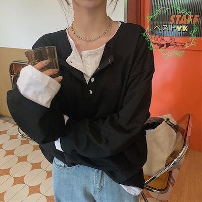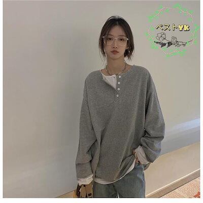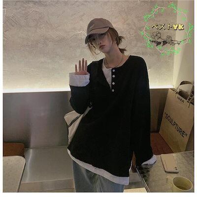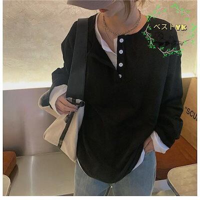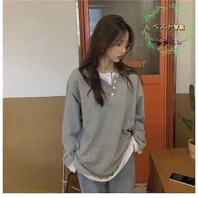 カットソー レディース スウェットトップス 偽二枚 ゆったり 春 スウェット パーカー フェイクレイヤード Tシャツ 長袖 トップス 秋