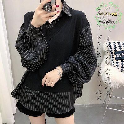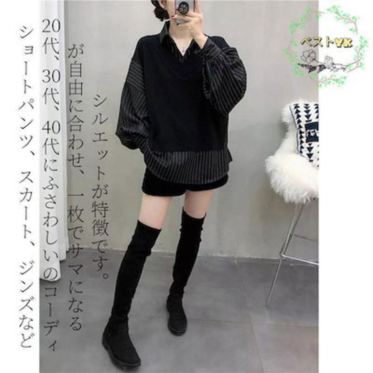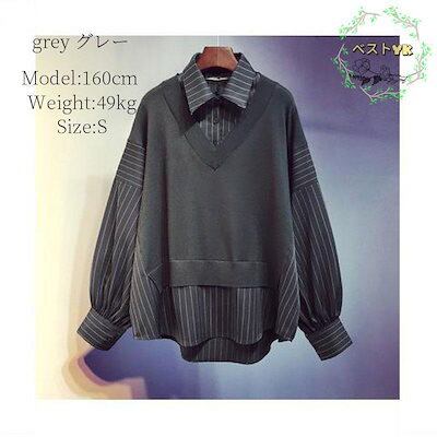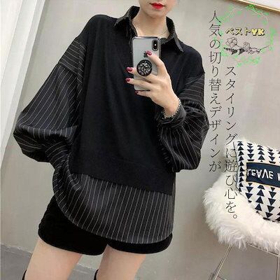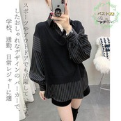 パーカー レディース プルオーバー スエット レイヤード カットソー tシャツ トップス ストライプ柄 ブラウス ゆったり 体型カバー カジュアル