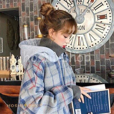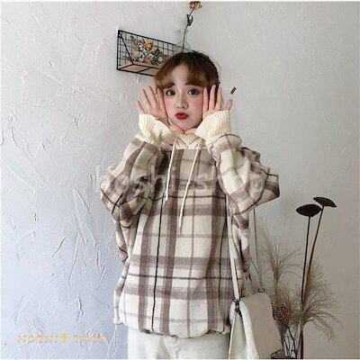 裏起毛パーカー レディース パーカ オシャレ 2色 チェック柄 一枚で楽しい プルオーバー 長袖 ボアパーカー 大人 スウェットトップス Tシャツ アウター