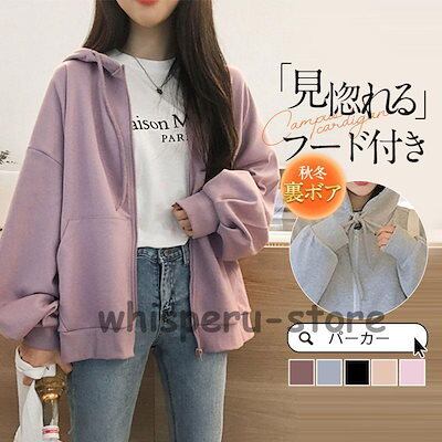 パーカー トレーナー レディース フード付き 厚手 裏ボア 裏起毛 長袖 秋服 秋冬 ジッパー ジップアップ カットソー ジャケット 羽織 カジュアル ゆったり