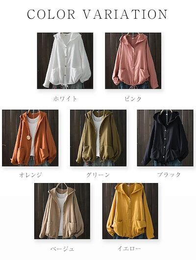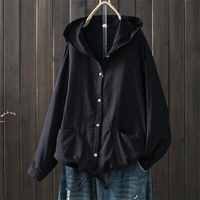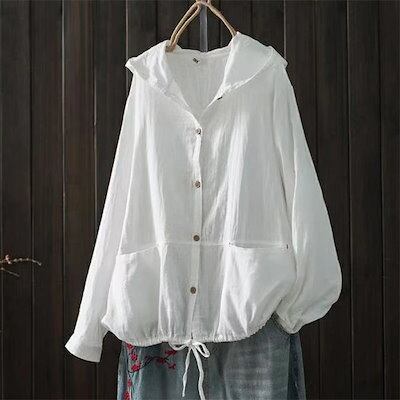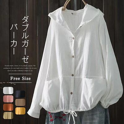 パーカー レディース ガーゼ アウター パーカー 夏 長袖 パーカー 秋 カーディガン フード付き 無地 綿混 ボタンパーカー 前開き 大きいサイズ ゆったり 体型カバー 着回し エスニック カジュア