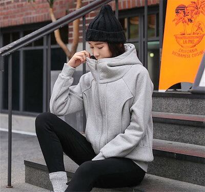 パーカー スウェット トレーナー フーディー レディース 無地 防寒 トップス スウェットパーカー アウター ジップアップ 長袖 厚手 秋 冬 裏起毛 暖か 羽織り ファスナー 前開き フード付き ゆ