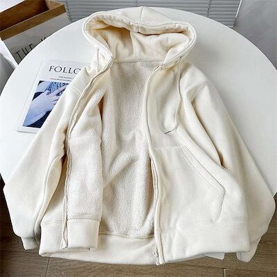 前開き 部屋着 フード アイボリー 通勤 通学 ゆったり ボアパーカー 春先 オーバー 秋冬 ボア 裏ボア パーカー ジャケット 裏起毛 アウター ボアフリース ママコーデ レディース 長袖 可愛い