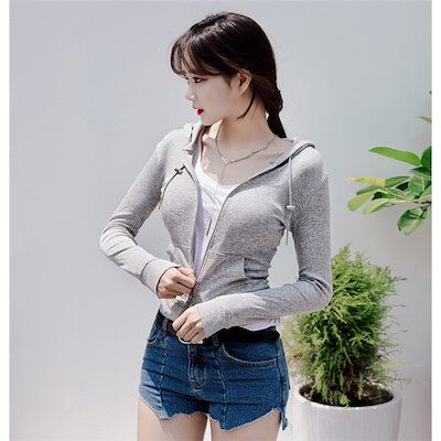 トップス パーカー ジップパーカー 無地 長袖 羽織り カジュアル シンプル レディース 春夏 きれいめ ジップパーカー ショート丈 着やせ