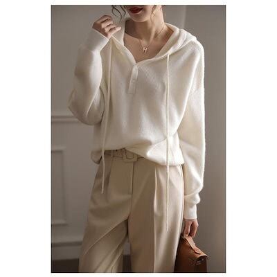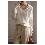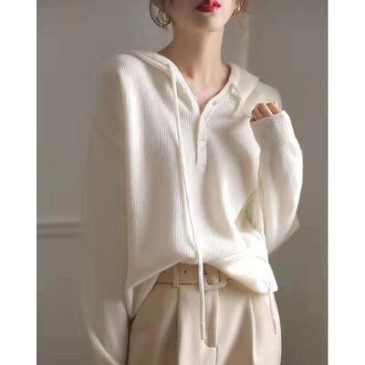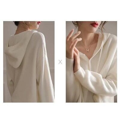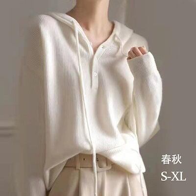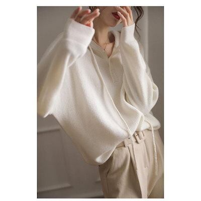 長袖パーカー フード付き パーカー レディース スウェットパーカー 前開きトップス プルオーバー カットソー 無地 カジュアル シンプル ゆったり ホワイト ファション
