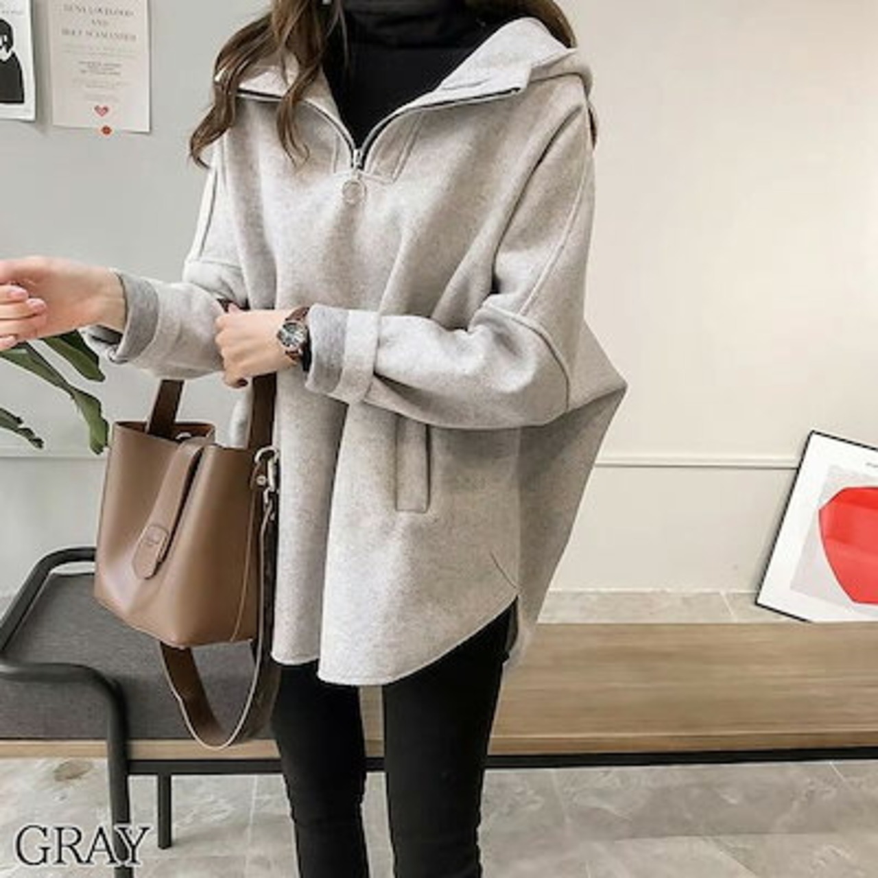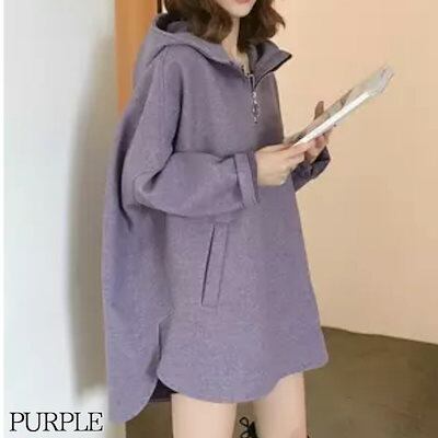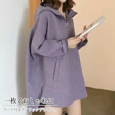 ハーフジップ ロングパーカー スウェット ハーフジップトレーナー フード付きパーカー オーバーサイズ プルオーバー パーカー レディース スウェットパーカー スウェットトレーナー フードパー