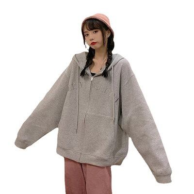 メガ割 メガ割りグレー フード付き スウェット レディース 秋冬 ゆったり 長袖 コート福袋ゆったりスウェット