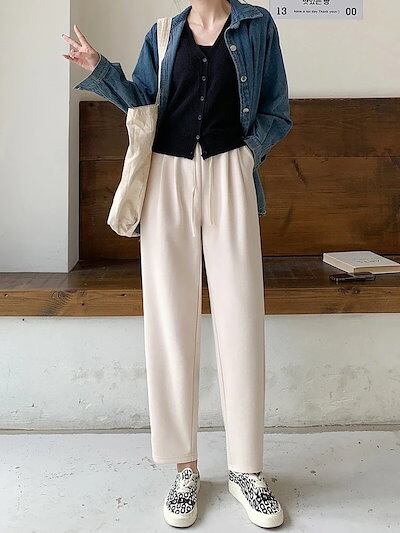 テーパードパンツ ベージュ ハーランパンツ レディース 2024春秋新作 ハイウエスト カジュアル 小さい キャロット・パンツ 薄手 韓国ファッション30%までに制限