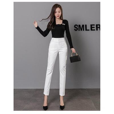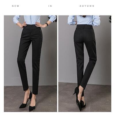 スラックスパンツレディース九分丈通勤黒スラックスストレートズボンボトムス大きいサイズビジネスおしゃれオフィスフォーマルOL着痩せ
