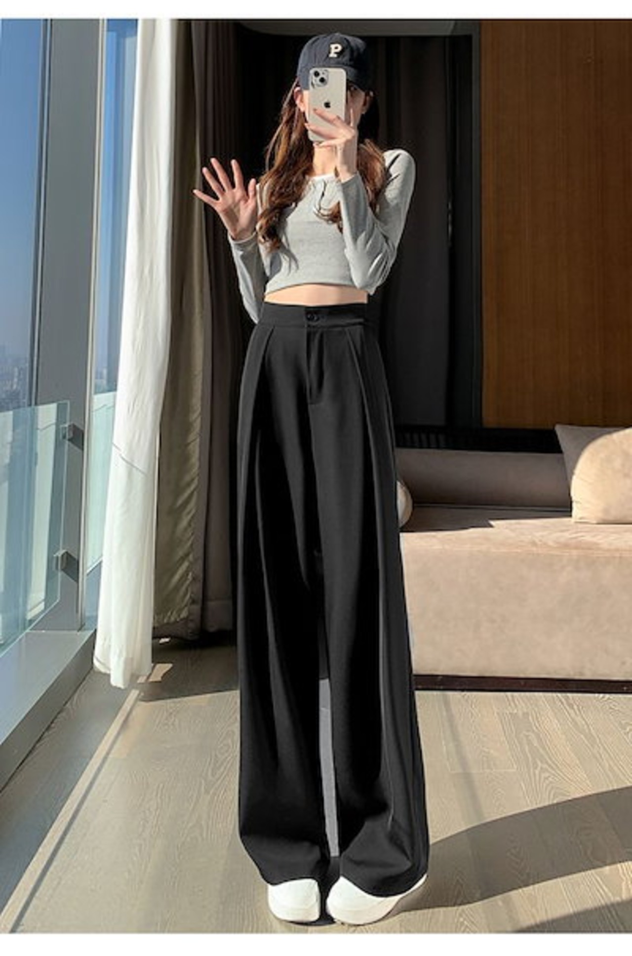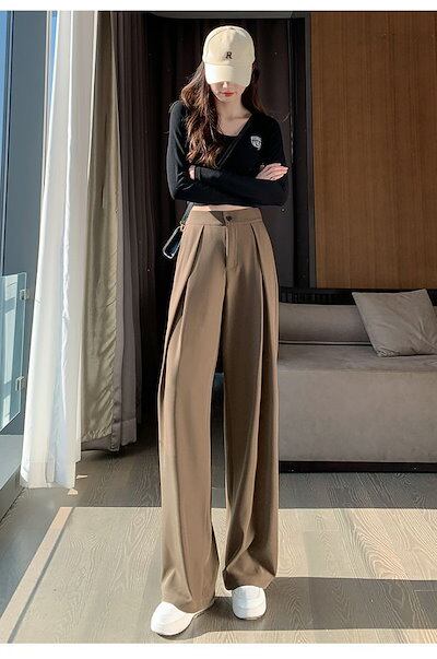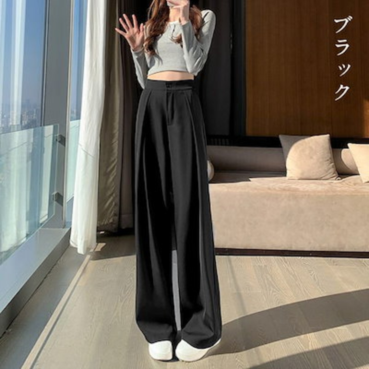 ハイウエストタックパンツスラックス脚脚長効果細見え可愛い大人カジュアルデートおすすめレディーストレンドオシャレ人気プチプラ韓国ファッション
