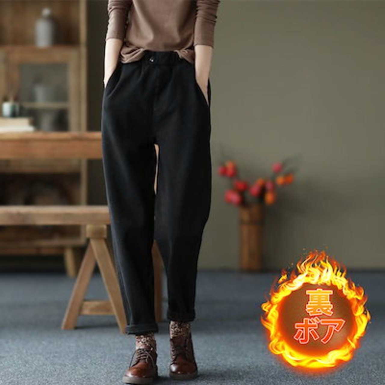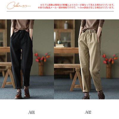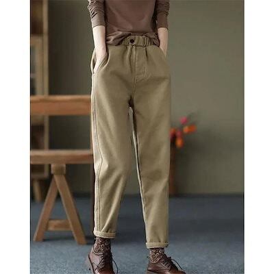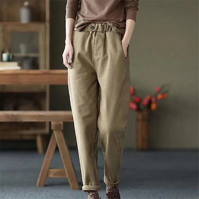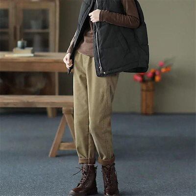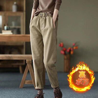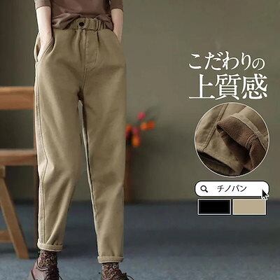 チノパン レディース テーパードパンツ 裏ボア 裏起毛 ウエストゴム カジュアル 秋冬 厚手 ロング丈 細身 暖かい 旅行 通勤 通学 オフィス 着痩せ 無地