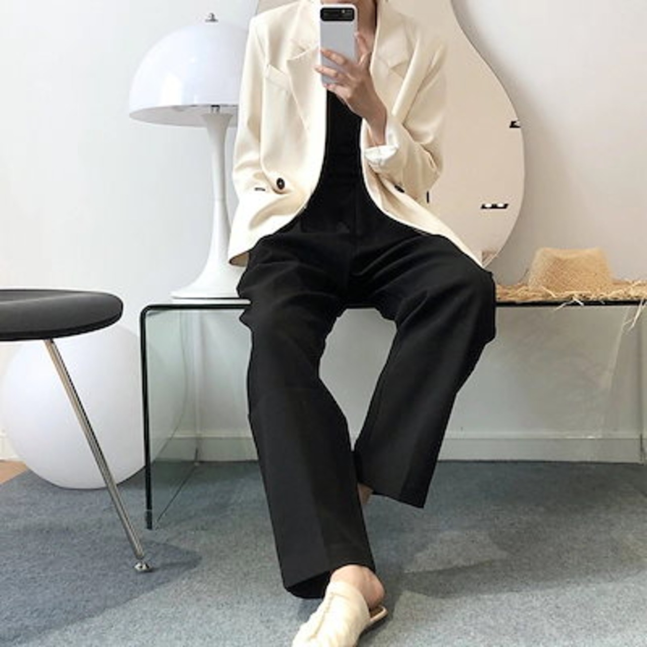レディースモップパンツ黑白薄手ロング丈ズボン皺防止肌にやさしい美腿合わせやすい人気スラックススーツ接触冷感ボトムス福袋