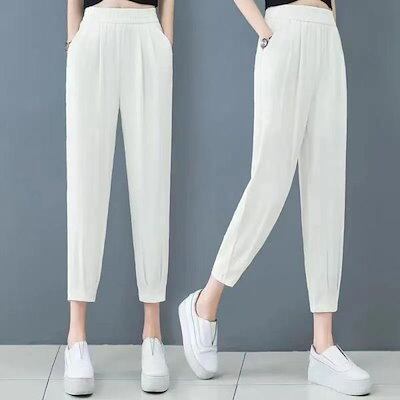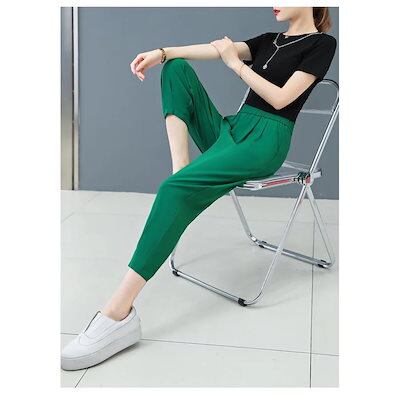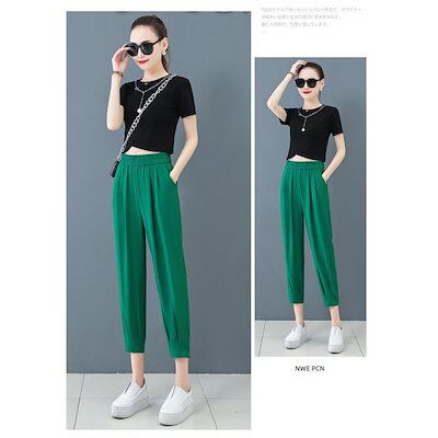 テーパードパンツレディースボトムススラックス九分丈ビジネスハイウエストカジュアルひんやり薄着痩せ結婚式卒業式おしゃれ