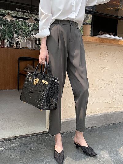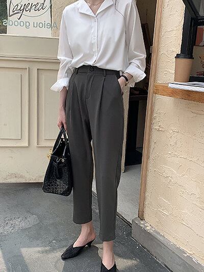 テーパードパンツ カジュアルパンツ ハイウエスト レディース 春夏 韓国風 タックパンツ 大きいサイズあり 20代 30代 40代 50代 美脚 ストレッチ カジュアル おしゃれ オフィス 通勤