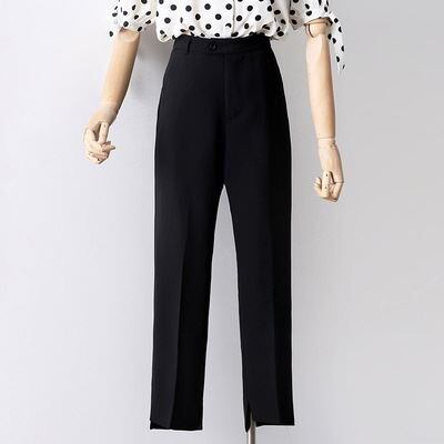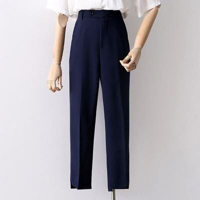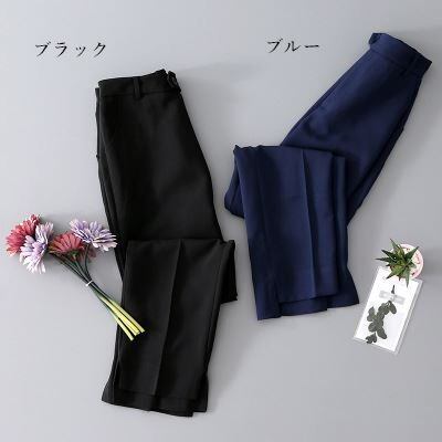 スラックス パンツ レディース 9分丈 ロングパンツ カジュアル ハイウエスト バックゴム 無地 細