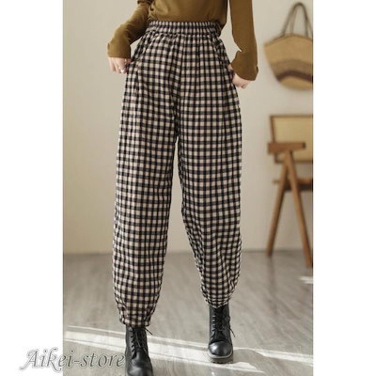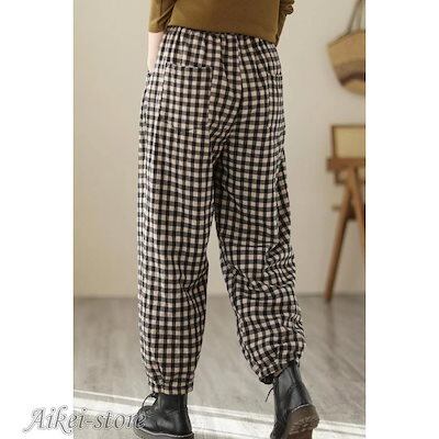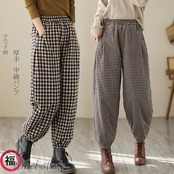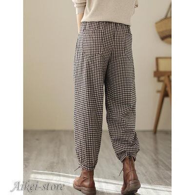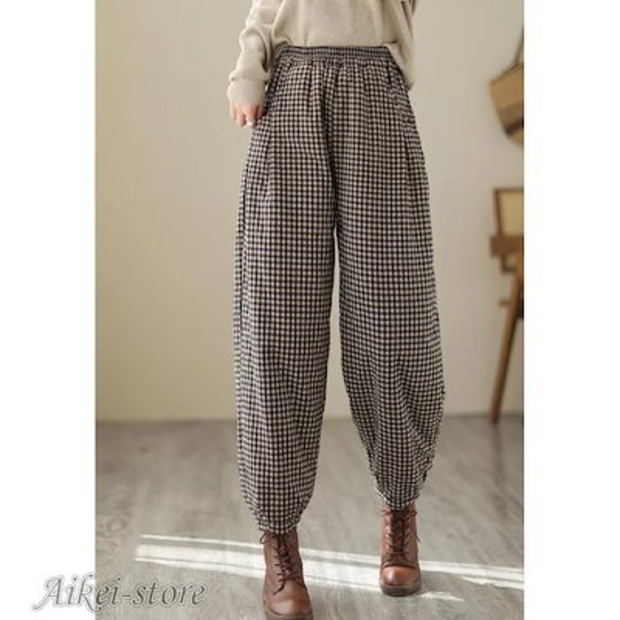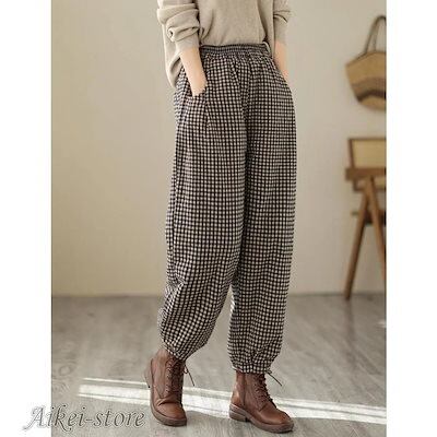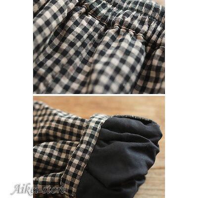 サルエルパンツ チエック柄 中綿パンツ 厚手 ズボン ボトムス テーパードパンツ レディース 大きいサイズ 暖かい 無地 カジュアル 着痩せ 秋冬