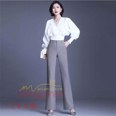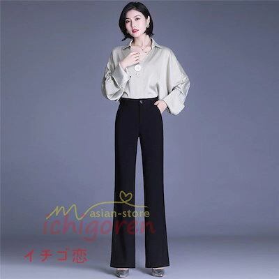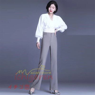 スラックス ゆったり 着痩せ カジュアルパンツ レディース ハイウエスト 美脚ライン ストレート シンプル ロングパンツ 通勤 通学 デイリーコーデ フォーマル