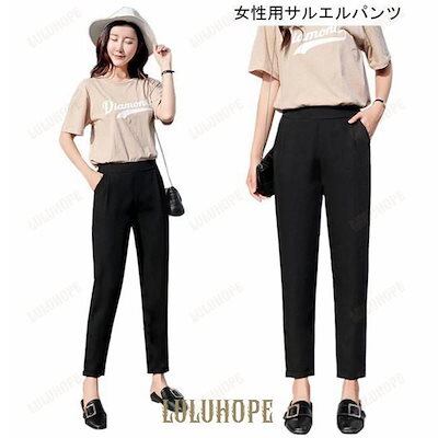 テーパードパンツ レディース スラックス 九分丈 スーツパンツ ウエストゴム サルエルパンツ 女性 ボトムス 通勤 フォーマル パンツ 薄手