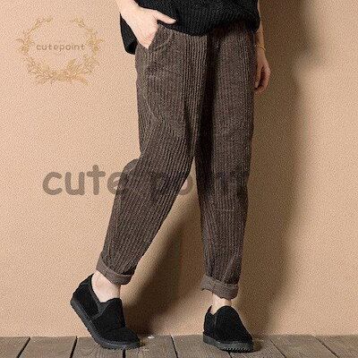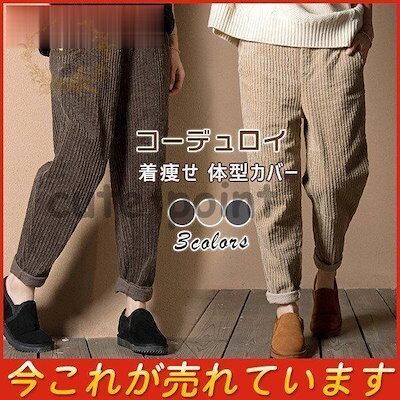 が来ましたコーデュロイ レディース ボトムス ストレッチ ロング丈 テーパード コーデュロイパンツ 楽ちん 大きいサイズ ロング丈 体型カバー 着痩せ