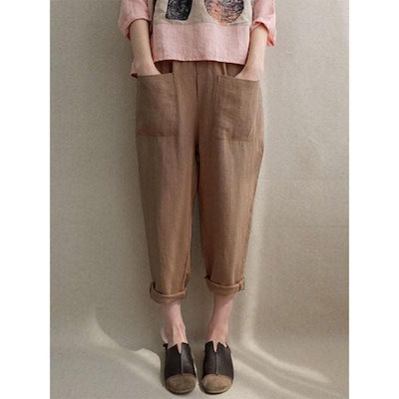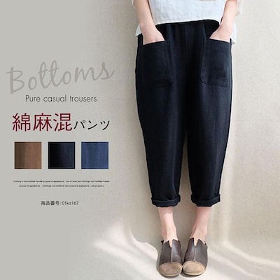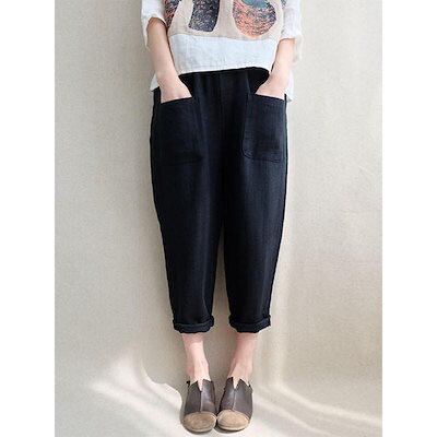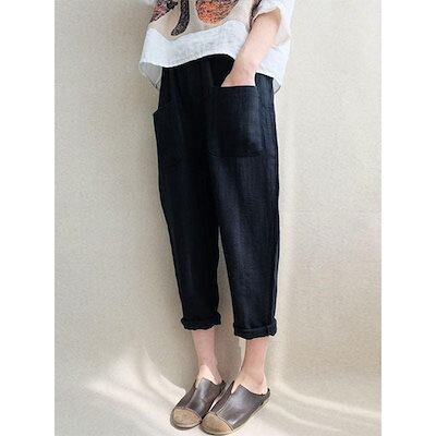 パンツ レディース ボトムス テーパードパンツ チノパン サルエル ロングパンツ パンツ ゆったり コットン リネン 綿麻 ポケット付 薄手 春 夏 秋