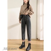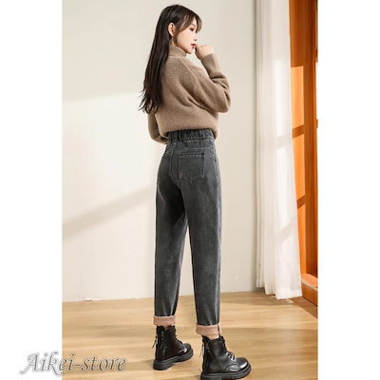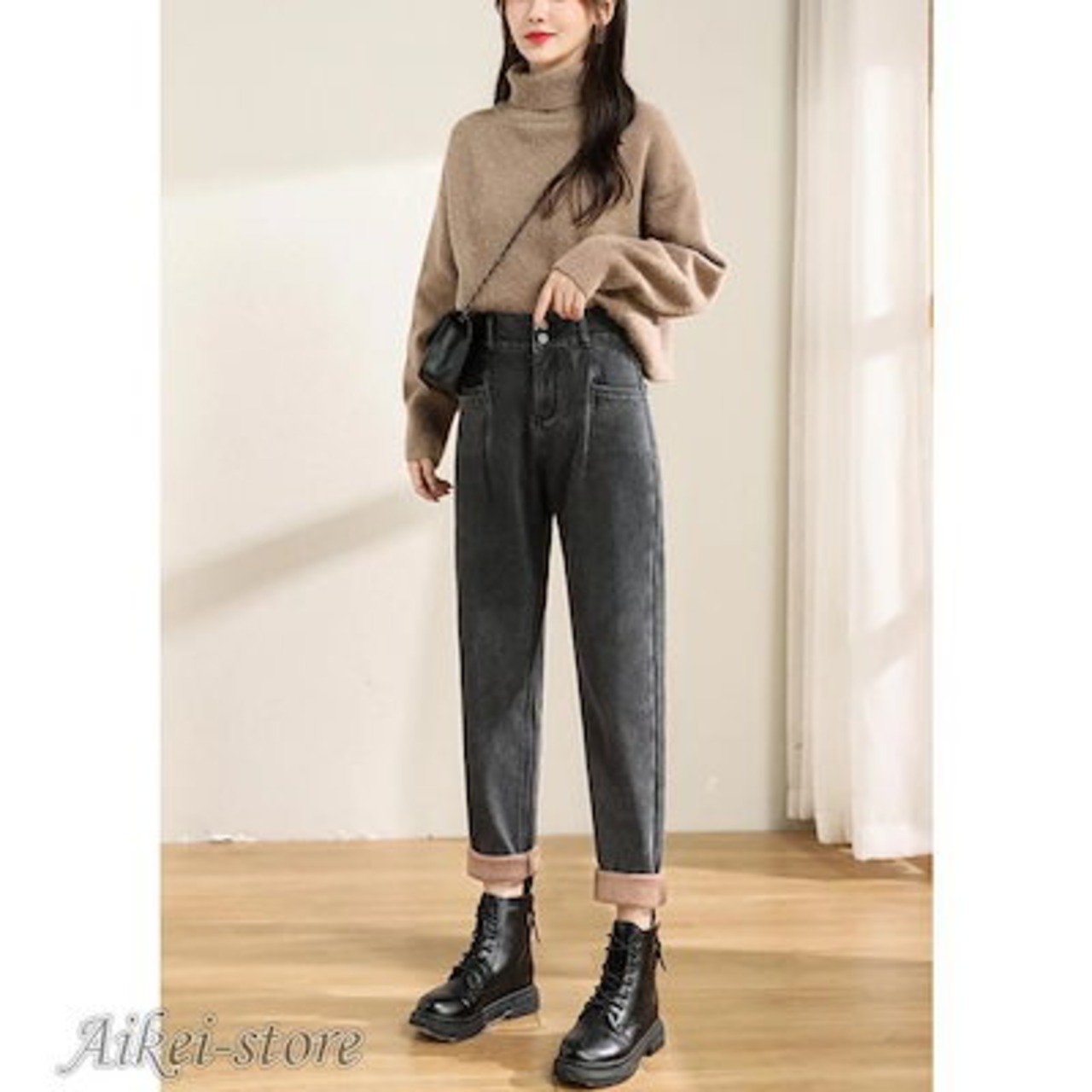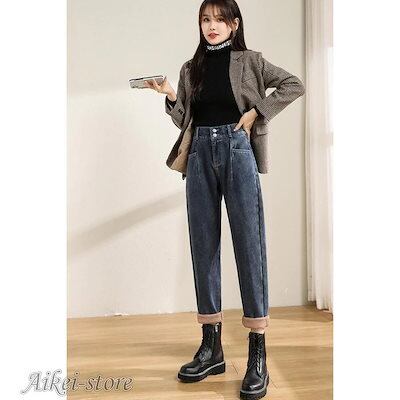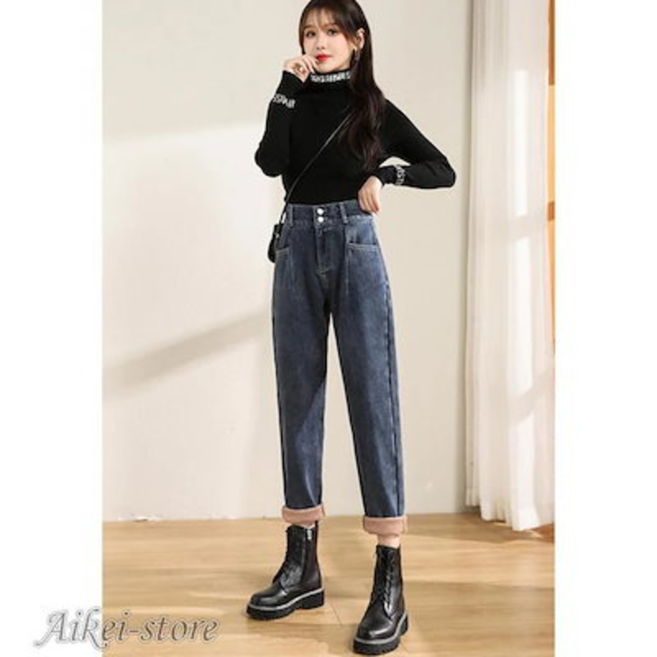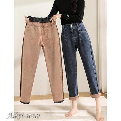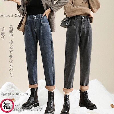 サルエルパンツ デニム 裏起毛 テーパードパンツ ボトムス ズボン レディース ポケット付き ゆったり ウエストゴム ハイウェスト