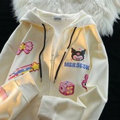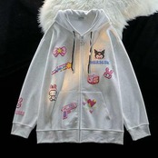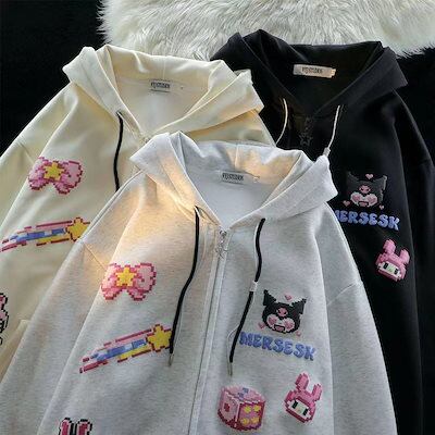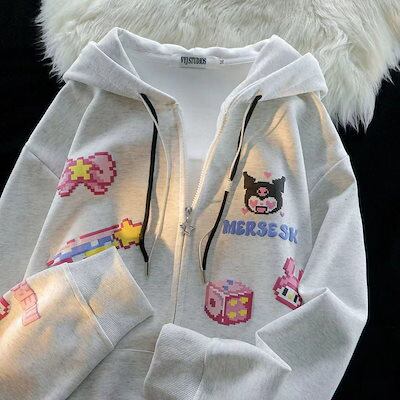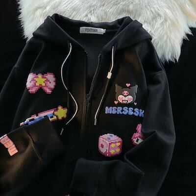 【shanghaihengq】パーカー レディース ジップアップ スウェット フード付き ゆったり 薄手裏起毛 ジップアップパーカー 可愛い クロミちゃん マイメロディ トップス 秋冬 カジュアル ア